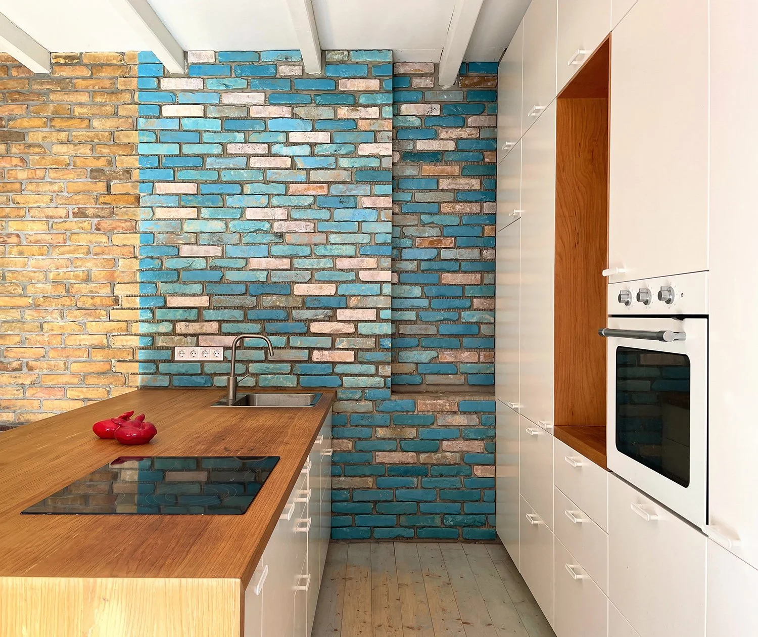 This work explores the aesthetic spontaneity of glazing errors by using chemically and physically damaged bricks as a base, materials that are nearly impossible to handle. The aim was to rehabilitate them by validating these usually unwanted qualities and reintroducing them into interior design.